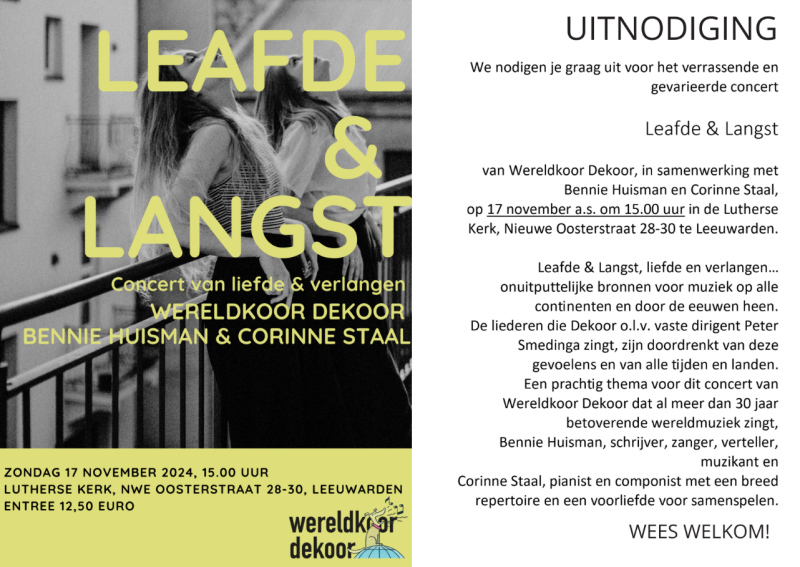 Er wordt gecollecteerd voor een project van Harold en Ytsje uit Bartlehiem en naderhand is de Winze open voor een drankje. Aanvang 19.30, tot dan!